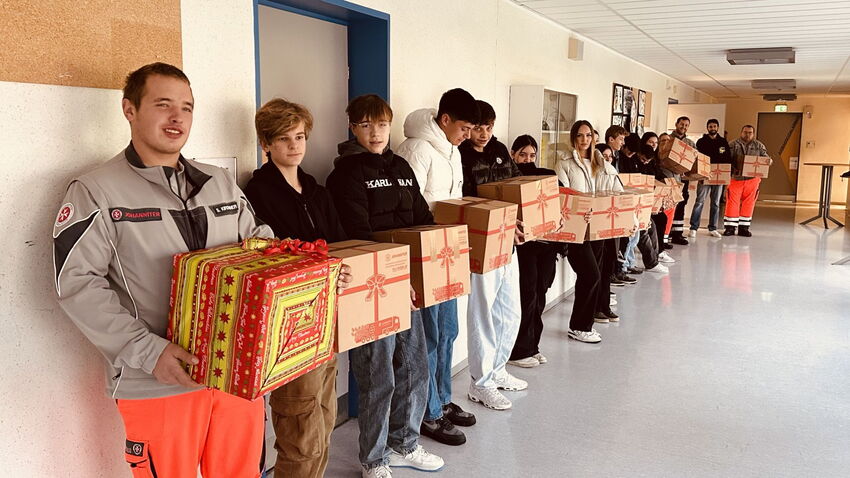 Auch in diesem Jahr beteiligten wir uns wieder an der Paketaktion der Johanniter, die an der Schule durch die Klasse 8b mit Klassenleiter Arno Hofmeister organisiert wurde. Schon seit Wochen wurde in den einzelnen Klassen gesammelt. Die Packliste wurde auf die Schüler aufgeteilt. So konnte sich jeder einbringen und Gutes tun. Danke an alle Einzelpersonen und Klassen, die die Aktion bei uns an der Schule möglich machten und fleißig sammelten. Und wiederum konnten wir heute eine große Anzahl von Paketen an die Johanniter übergeben, verknüpft mit der Hoffnung, dass wir den Familien eine kleine Freude bereiten können. Frohe Weihnachten!