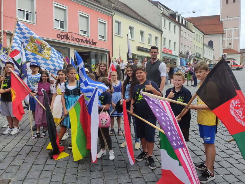 Am Freitag beteiligte sich die Mittelschule Landau mit einer achtbaren Abordnung beim Volksfestauszug für das diesjährige Landauer Volksfest. Schön in Dirndl, Lederhose und/oder Schulshirt und weit erkennbar durch eine Vielzahl von bunten Fahnen zogen die Schüler mit ihren Lehrkräften von der oberen Stadt zum Festzelt. Schön war´s und wir wurden auch sehr gelobt! … kein Wunder bei den braven Kindern.