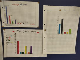 Solche Fragen stellte sich die 5b gegenseitig - und stellte die Ergebnisse als Diagramme dar.